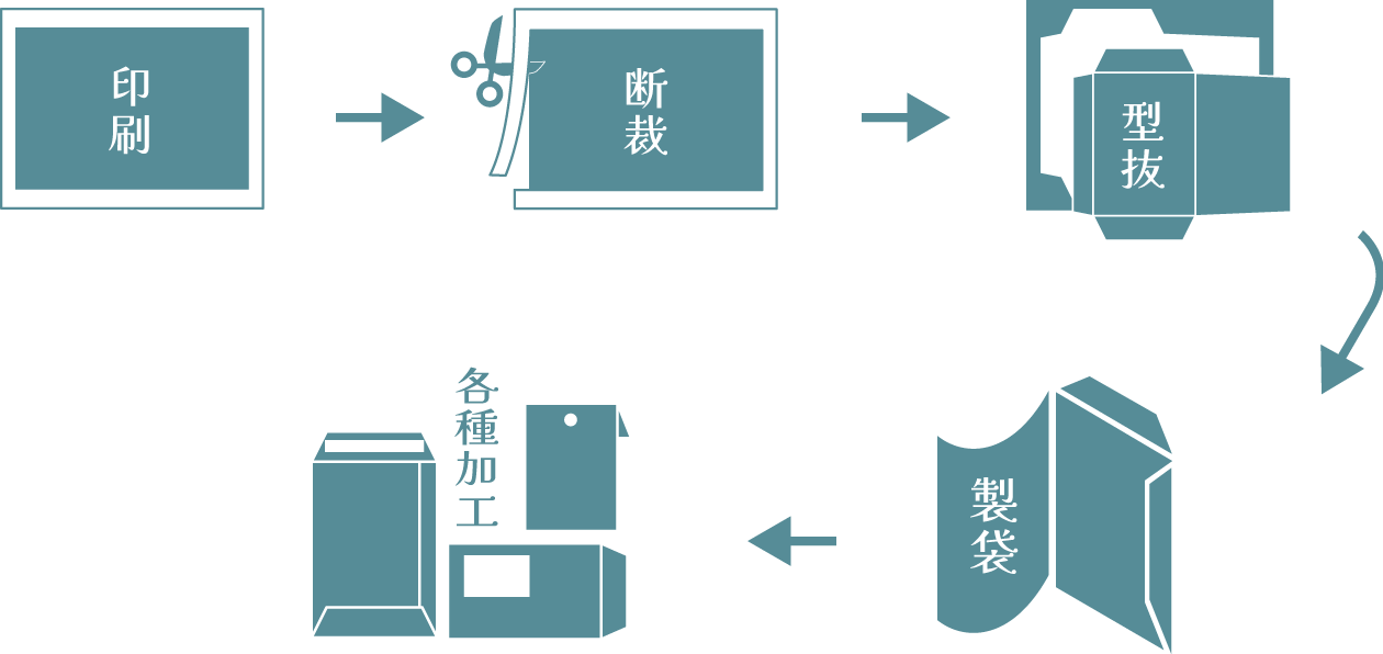 断裁・エキセンなどの断ち抜き加工から、製袋、その他加工まで